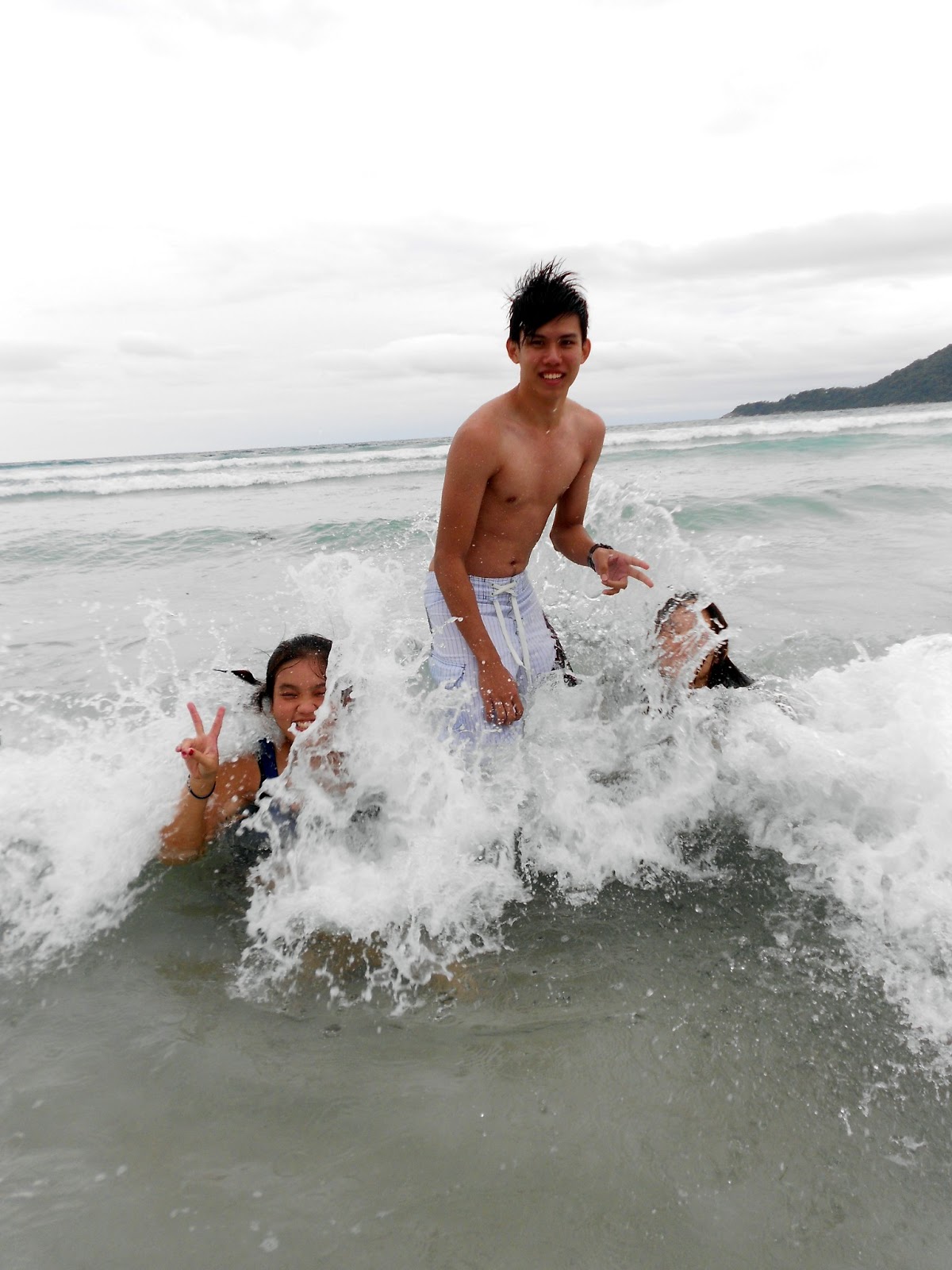 Saw all those photo? Everyone of us are really enjoy showering with the water. The last photo of mine can show you how great it feels. =) And now it's Simon and my sexy back. Gotta train more on my back to get a nicer figure. Extra place we went are, Long Island where all the tourists are, especially foreigner. And the wave there is really nice, where you can go surfing if only you have surfing knowledge. It's not advisable to go too far beyond the beach. You never know what the wave can do to you. Safety first!
